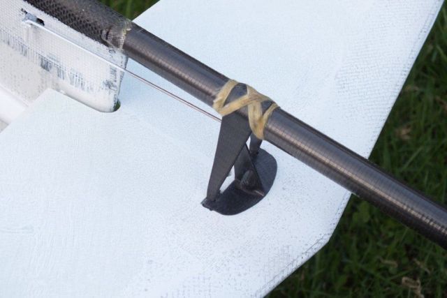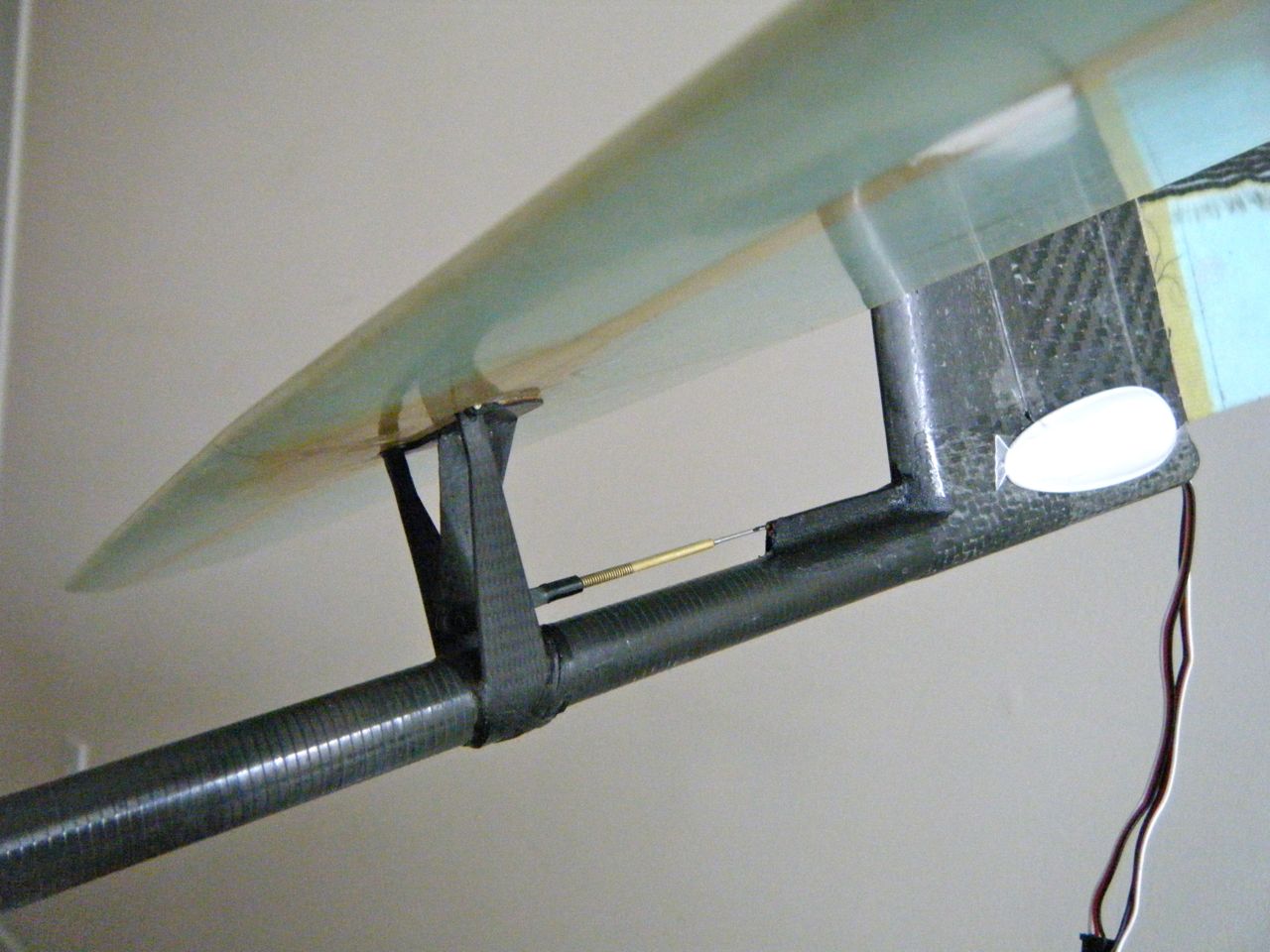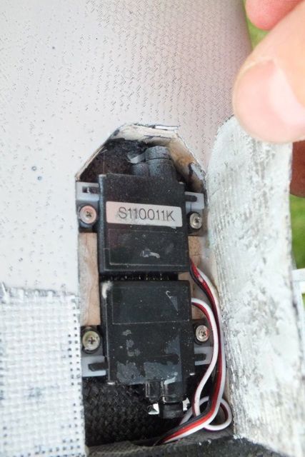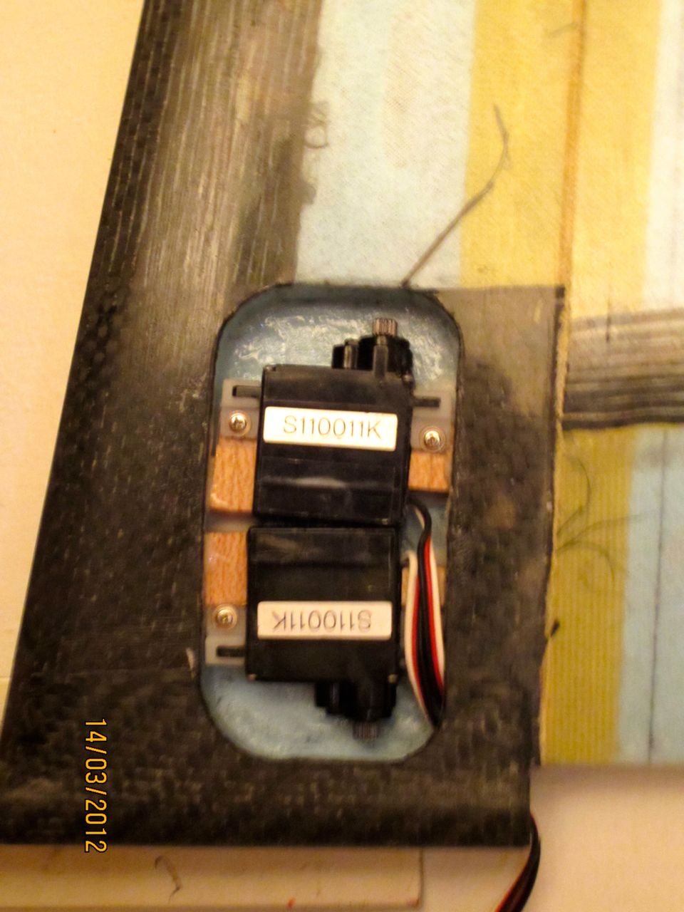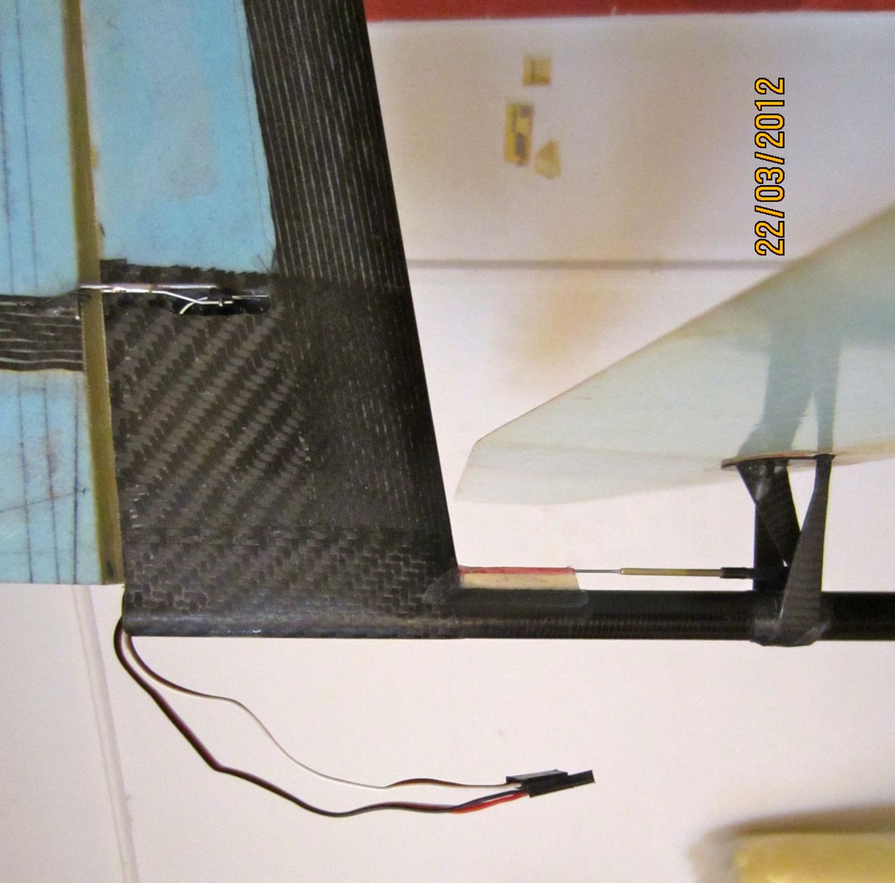Servos have been embedded into the fin. They are mounted using little screws for ease of maintenance on the field and they disappear in the thickness of the airfoil without a bump!
