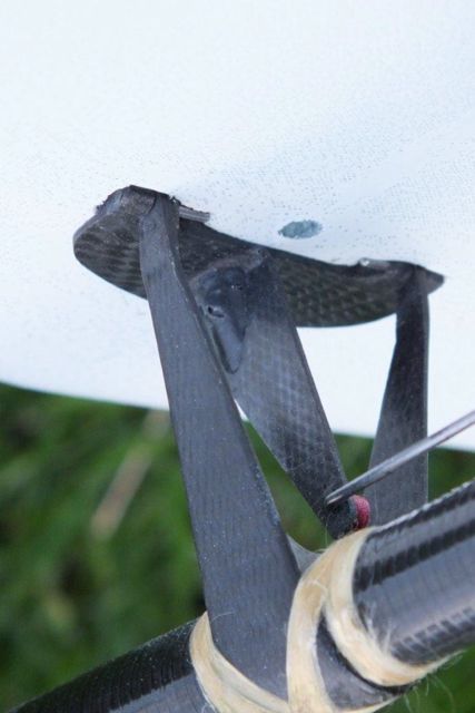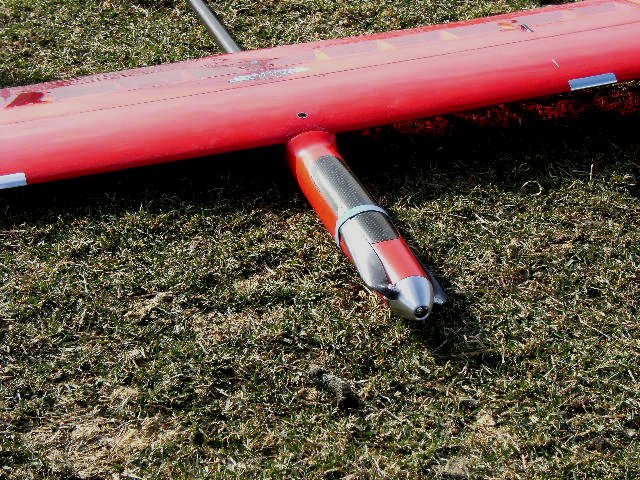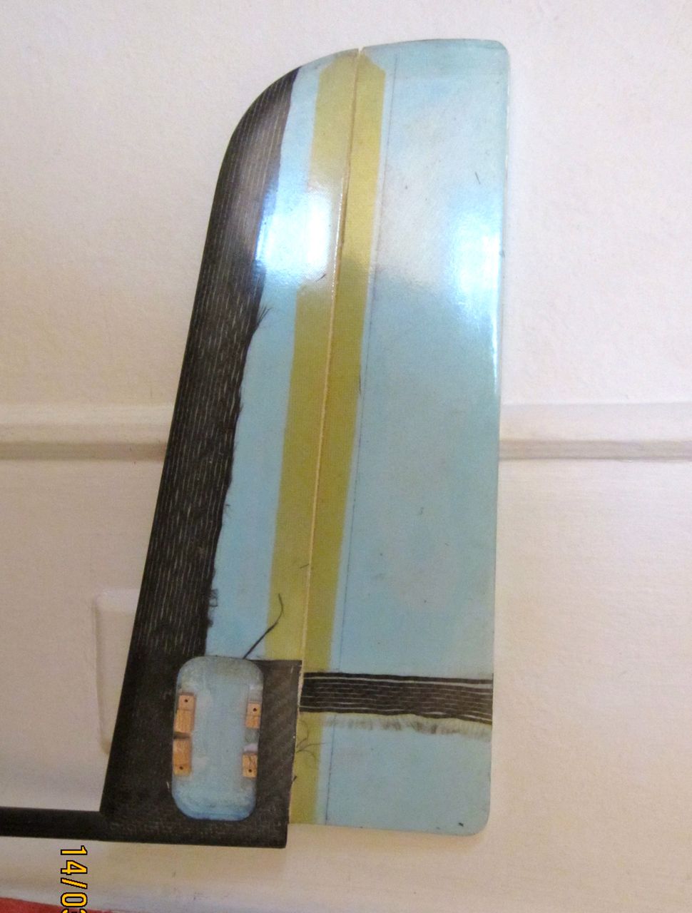 Steve has put particular attention to the installation of servos in the fin. The elevator pushrod comes out from the leading edge of the fin being aligned with the airflow. The actuation is totally slop free and the servos are easily accessible at all times. This tailgroup has proven totally reliable and sturd enough to take the abuse of precision landing.