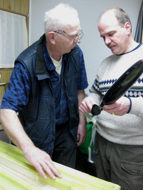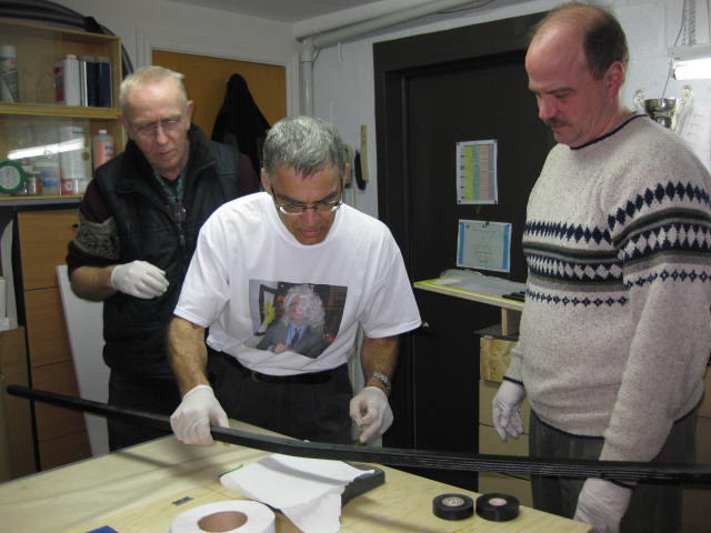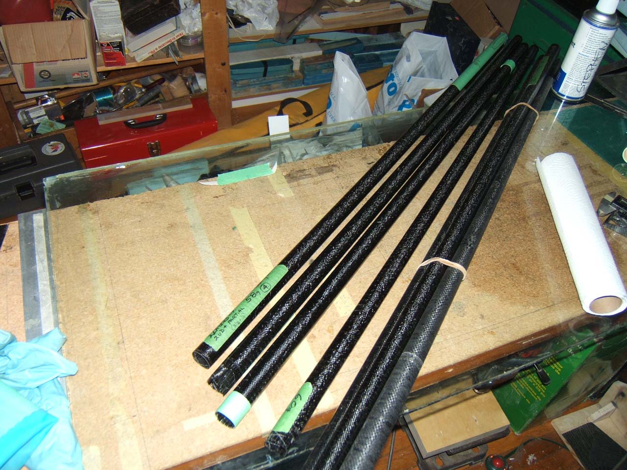 Rolling Booms Sometimes in the spare time during 2010 and nowadays whenever it is needed! After a few attempts with different de-moulding agents (first trials ended up with all sorts of bricks) and after having read the Babylonean amount of docs digged out from the Internet by our Master of Wisdom Duc, Steve and Jacques got the right recipe to roll booms on our own and the secret was revealed to the masses: put lots, lots and lots petroleum jelly on the mandrel and do not tighten too much the VHS tape at the end! EASY!