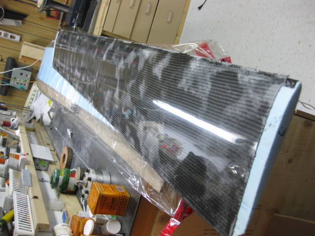 The central portion of the spar has been wrapped and a carbon sox has been put over the whole thing.